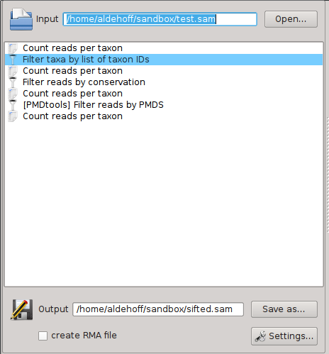 • A list of one or more tools and filters that are executed in a specific order. They are shown in the central part of the main window and can be freely rearranged, added and removed.